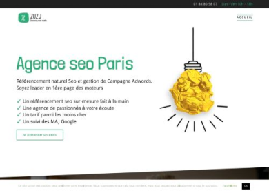 Zuzu est une agence seo située à Paris, elle vous propose des services de référencement de qualité et fiable afin d'apparaitre votre site sur les prem...