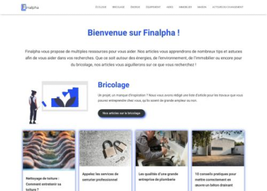 Finalpha est un blog de conseils, de trucs et astuces autour de diverses thématiques comme le bricolage, l'immobilier, le bâtiment, l'écologie et plus...