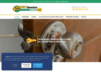 Ouest Ouverture, serrurier à votre service pour: dépannage serrurerie, dépannage vitrerie, réparation de volets roulants et menuiserie aluminium sur S...