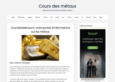 Grâce au site spécialisé; coursdesmetaux.fr, il est inutile de chercher sur Internet pour essayer de trouver les prix des métaux. En effet, on peut tr...