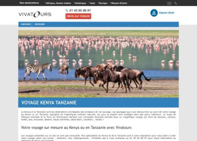 L'agence de voyage Vivatours Kenya & Tanzanie ouvre ses nouvelles offres pour les amateur de vie sauvage. Explorez les réserves naturelles d'animaux s...