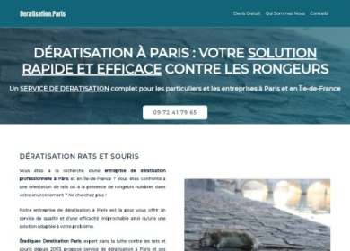 Nous sommes une entreprise de dératisation qui exerce depuis 2003 à Paris et en Ile-de-France. Dératisation Paris dispose d'experts qui sauront vous a...