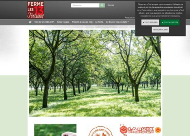 Le site http://www.fermeles13fontaines.com/ vous propose de commander en ligne des noix de Grenoble AOP ainsi que des produits dérivés de la noix. Vou...