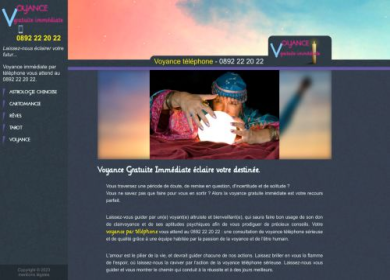 Voyance-telephone-avenir.com vous propose de rencontrer une voyante en ligne ou un voyant par téléphone en appelant le 0892 22 20 33. Ce numéro de voy...