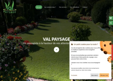 VAL PAYSAGE est une entreprise spécialisée dans les espaces verts, en particulier dans l’agencement de jardin. Nous réalisons tous travaux d’aménageme...