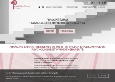 Psychothérapeute et psychologue, Francine Samak reçoit aussi dans son cabinet de Nice, dans les Alpes-Maritimes 06, des particuliers (adultes, enfants...