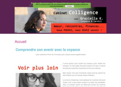 Le cabinet de voyance Colligence.fr et sa célèbre voyante Graziella vous présentent leur site web. N'hésitez pas à consulter par téléphone cette voyan...