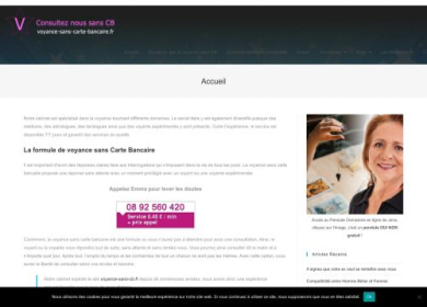 Ce site de voyance présente des numéros téléphoniques qui permettent à des clients de communiquer avec des médiums sans devoir régler par carte banca...