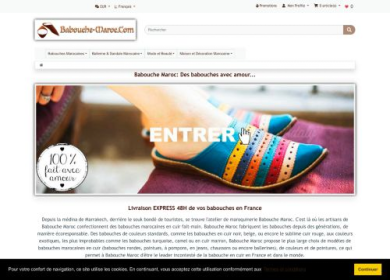 Vente en ligne de babouches, sandales et autres chaussures en cuir fabriquées à la main. Le site propose également une multitude d'autres produits en...