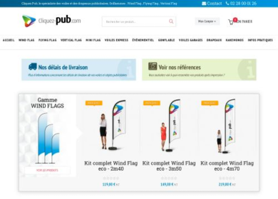 Cliquez pub est une boutique en ligne répertoriant différentes solutions publicitaires pour entreprises. L'entreprise vend des drapeaux publicitaires...