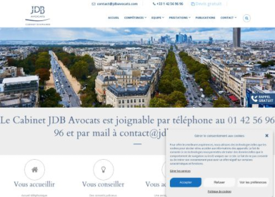 JDB avocats est un cabinet d'avocats d'affaires à Paris, fondé en 2006 et constitué d'avocats inscrits au Barreau de Paris. Il a pour vocation d'appor...