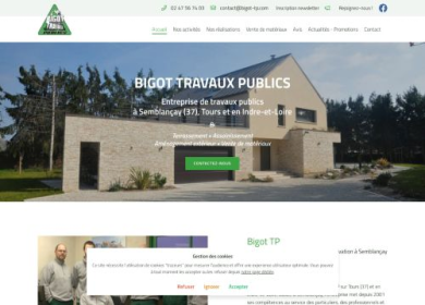 Bigot Tp réalise tous vos travaux de terrassement, voirie, aménagement extérieur et assainissement en Indre-et-Loire 37. intervenant dans un rayon de...