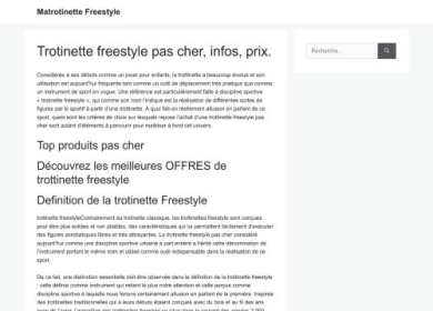 La trottinette freestyle est un équipement sportif qui permet de faire de figures de style très variées. Il est très apprécié par les jeunes de nos jo...