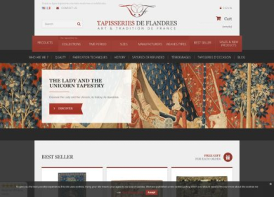 La boutique de Tapisseries de Flandres présente des modèles de tapisserie murale qui retracent l'histoire de la France et des légendes. Vous pouvez tr...