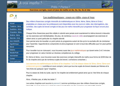 Ce site est conçu pour les professeurs de mathématiques et leurs élèves.Le professeur trouvera plusieurs centaines d'exercices projetables en classe e...